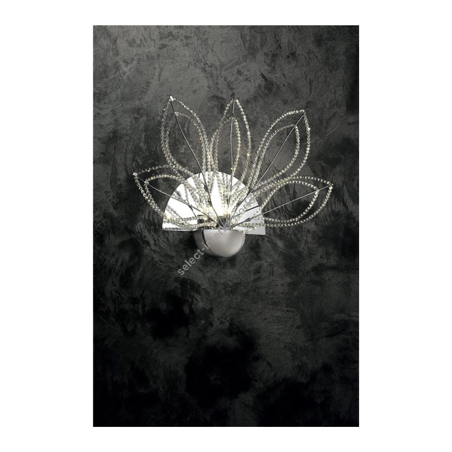 Floral design wall light in the purest crystal and polished chrome or 24 karat gold frame.