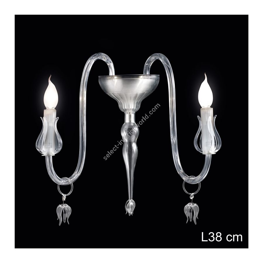 Classic design wall lamp in hand-blown glass by venetian master glass-makers. The model is available as clear or coloured.