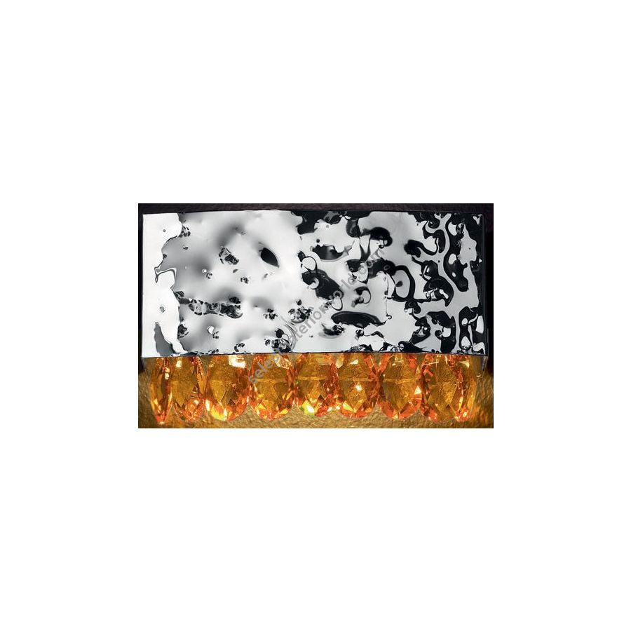 Wall light in clear or coloured crystal with handcrafted hammered metal structure, 100% made in italy.