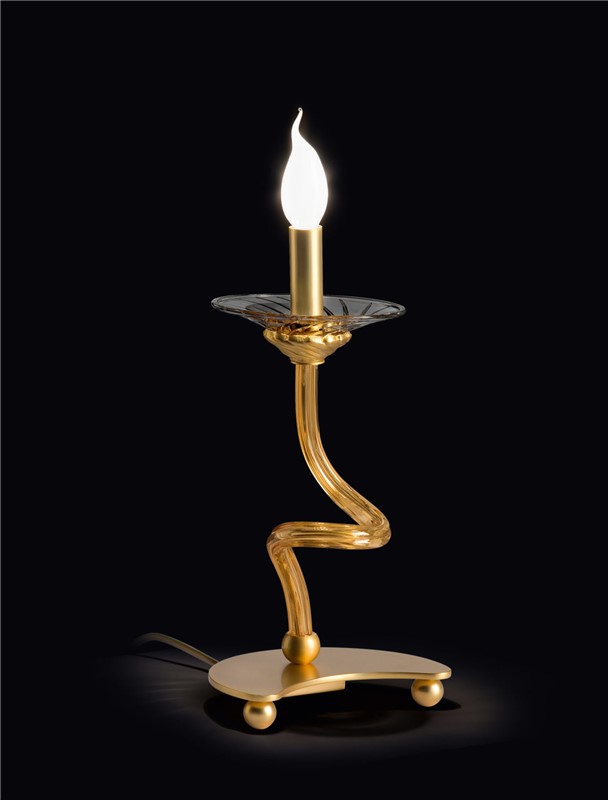Table lamp with wide arms made of murano glass available in two colours and crystal bobeches.