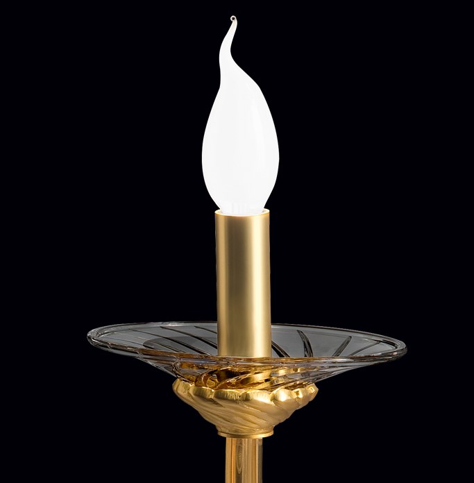 Blown murano glass arms with 4 ribs, hand-curved by the master glassmaker, available as clear or amber.