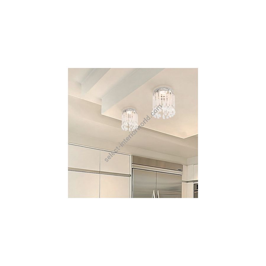 Spotlight with small clear glass rods and crystal multifaceted pendants, frame in 24 karat polished gold or chrome.