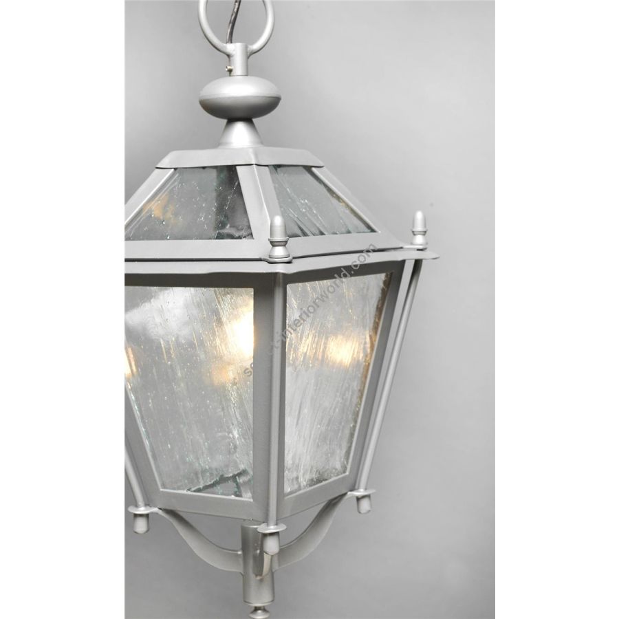 Iron lantern with chain and transparent glasses, galvanized and powder-coated. Lights: 1L. x 60W E27