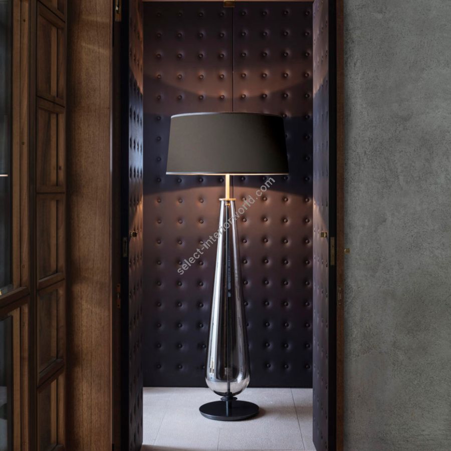 Glamorously reinventing the table lamp, New classic has a glass bottle in different shapes as a base and a shade of fabric or translucent material, for a fresh,