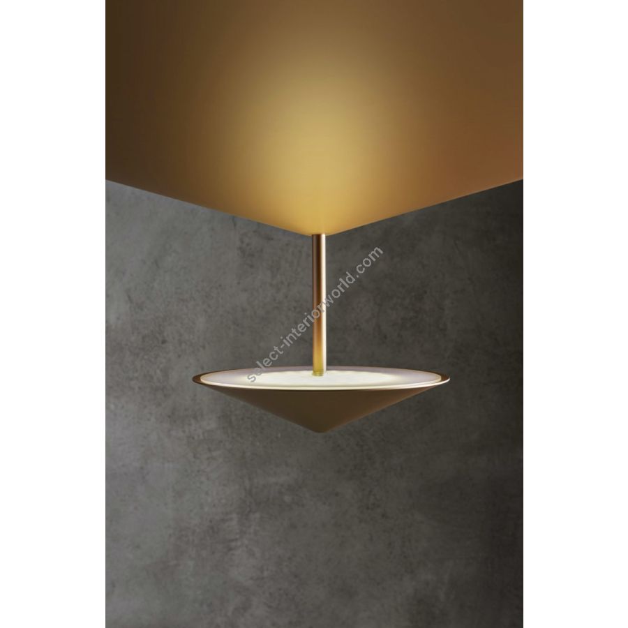 As in the classic myth Narciso looks at his image reflected in the water, likewise the cone of this lamp splits up to spread and reflect the delicate light of the lighting body.