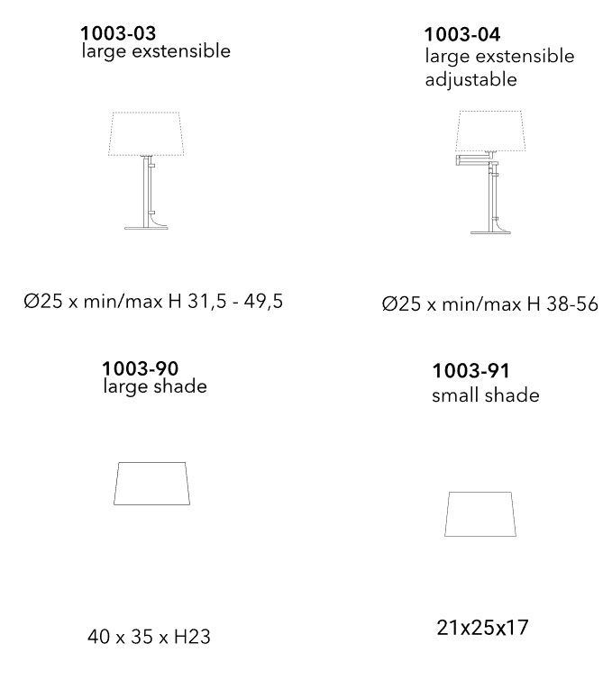 A family of lamps with a strong design vocation. In the table version, it is equipped with an adjustable arm, so that the shade can be moved according to requirements, and Bridget becomes the perfect reading lamp.