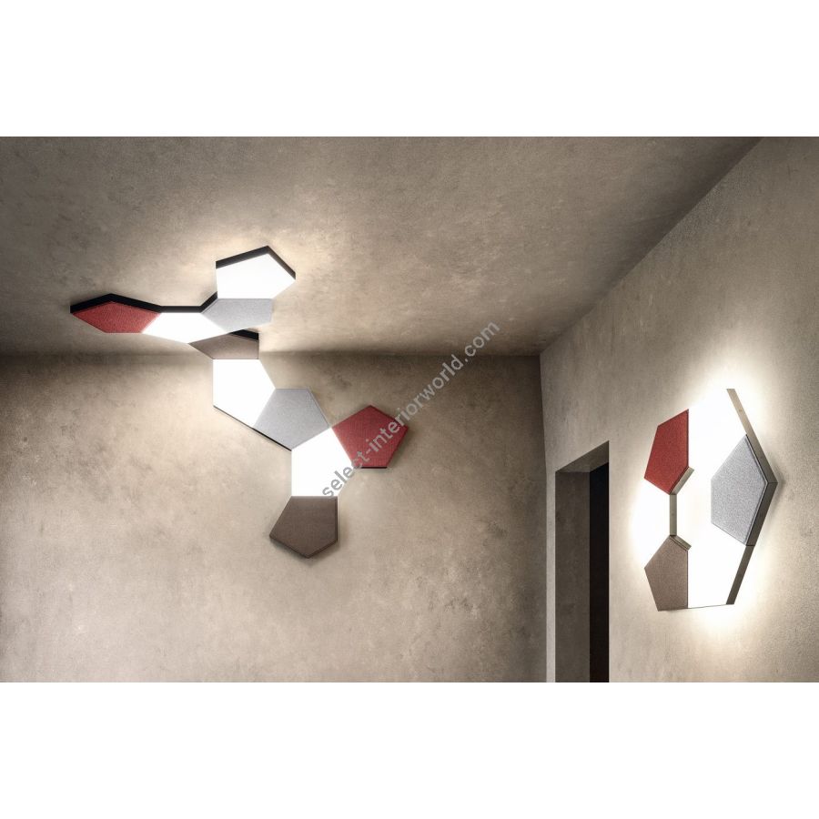 Tile is a wall and ceiling lamp, an object with a strong visual impact where the decorative and aesthetic function blends perfectly with the technical and functional aspects. The panels, available in either a luminous or decorative version, can be combined to create sophisticated compositions.