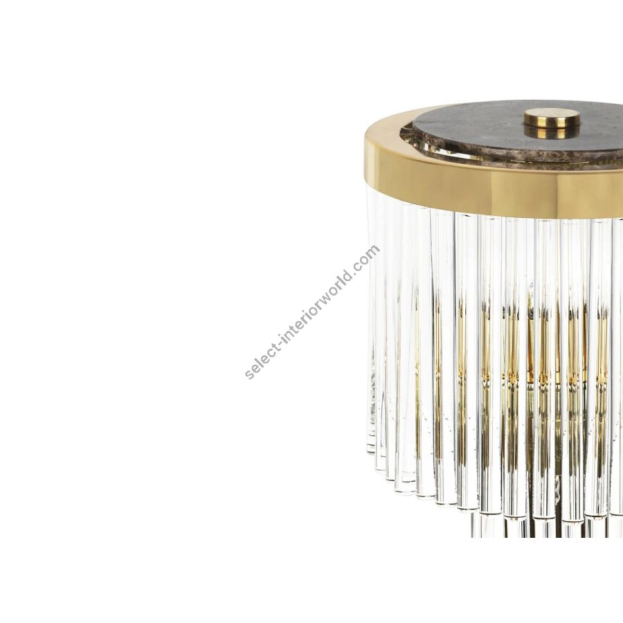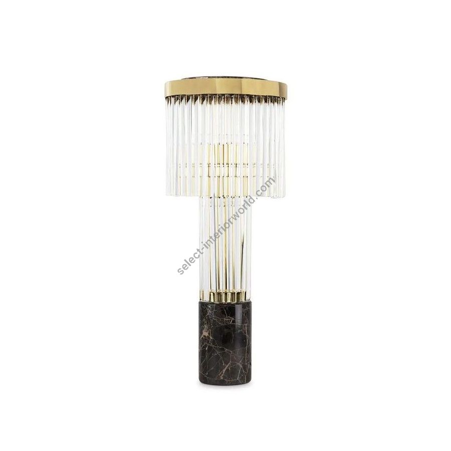 A representation of the architectural lines of lighthouses in the shape of a luxury table lamp. Pharo I Table Lamp has a marble base that supports the delicate crystals, topped with a brass plate. Pharo I is the perfect finishing touch for any desk or bedside table.