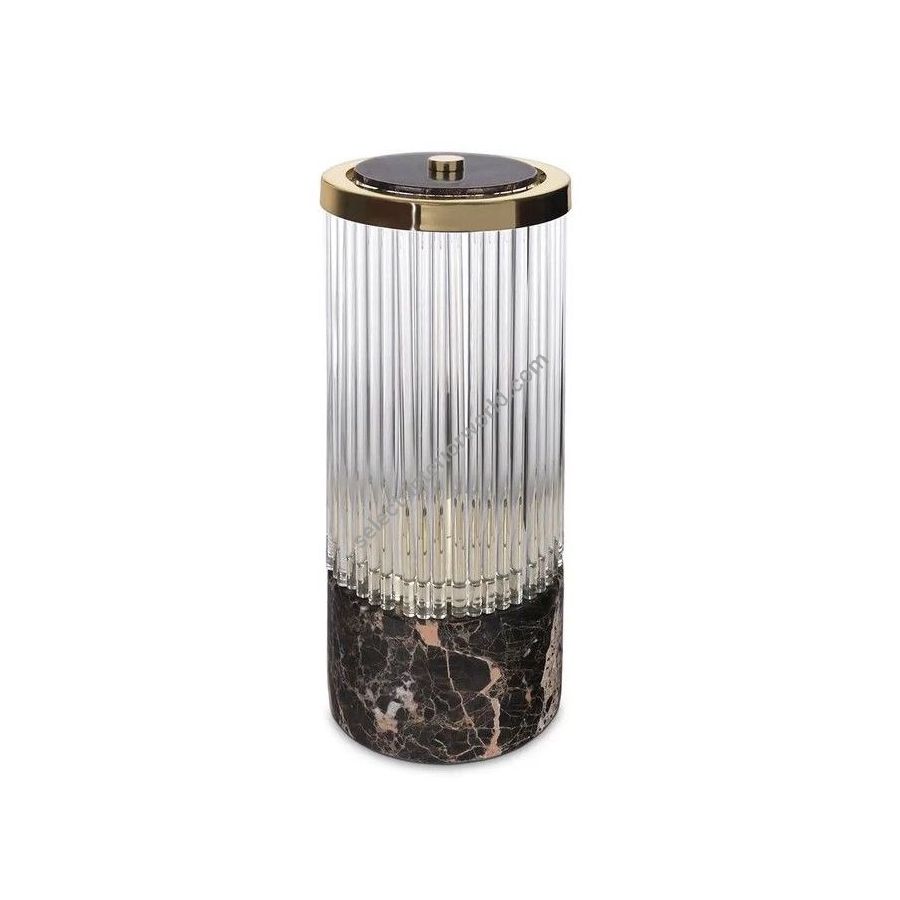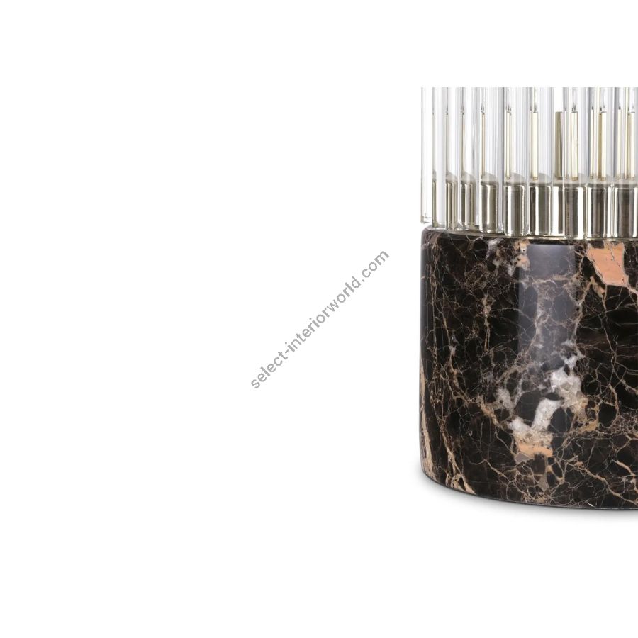 A representation of the architectural lines of lighthouses in the shape of a luxury table lamp. The Pharo II Table Lamp has a marble base that supports the delicate crystals and is topped with a brass plate, making it the perfect finishing touch for any desk or bedside table.