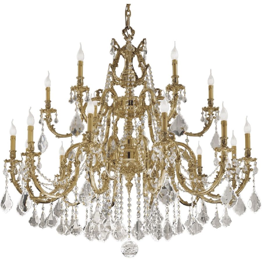 Collection of classic chandeliers and appliques made of brass in French Gold finish. It can be supplied with plate shaped Schoeler crystals or without, it can be customized in finishes and sizes