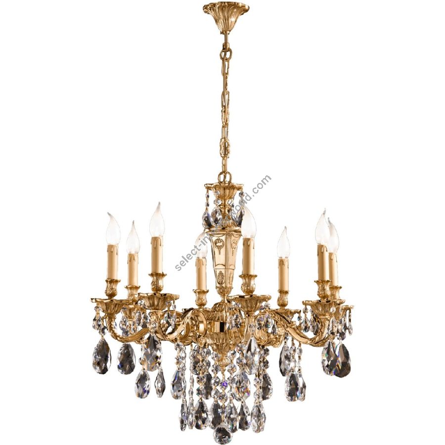 French gold chandelier with pear shape Schoeler crystal