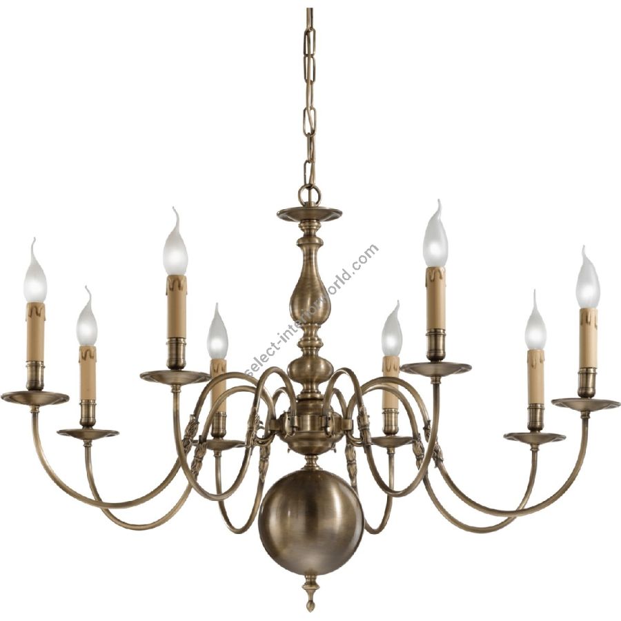The Flemish style chandelier could not miss in our production, sober and essential with a simple decorative detail in the arms, it is presented in the Antique Bronze finish which gives an antique halo to an ever-present style. It can be made in various sizes and finishes