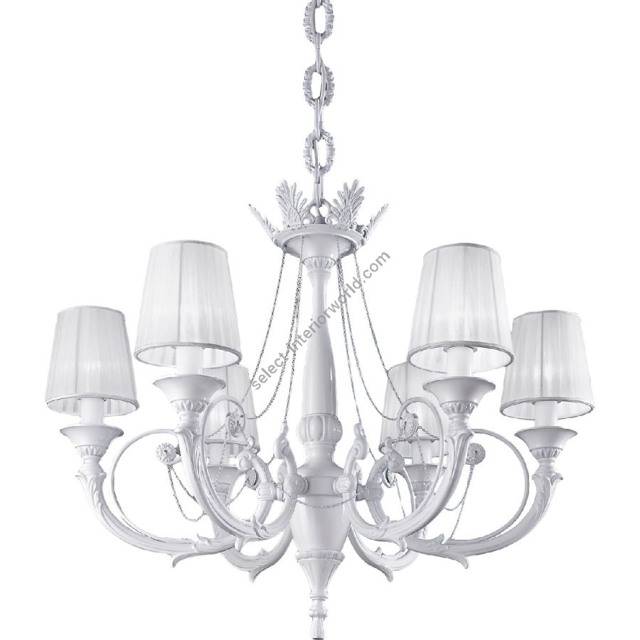 The glossy white finish and the white organza lampshades make the Ginevra collection a modern classic, suitable for more contemporary rooms, while the Antique Bronze finish and the taupe color organza lampshades give a refined appearance. Customizable in finishes and sizes