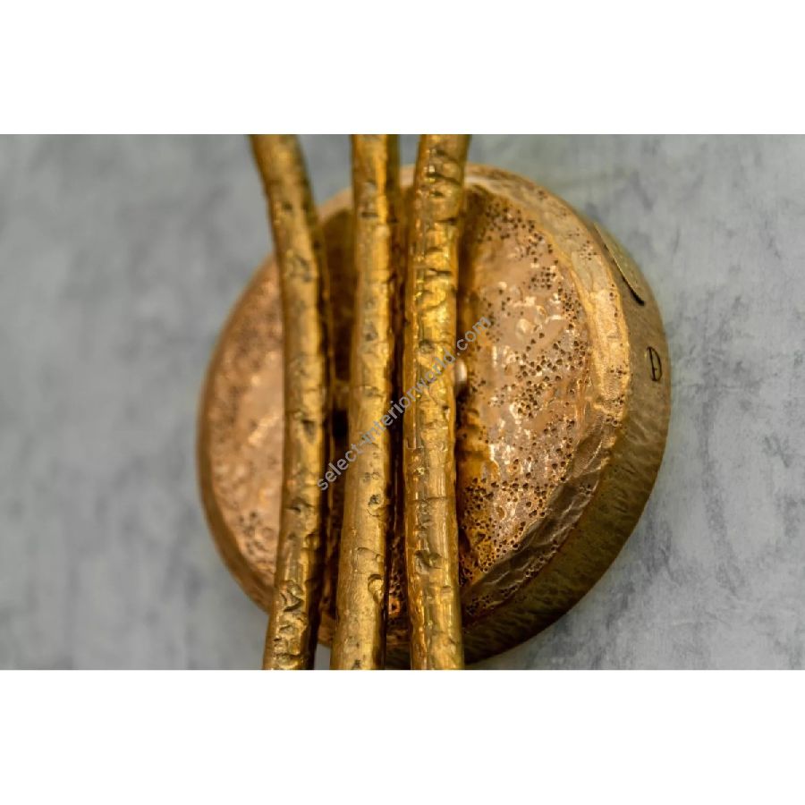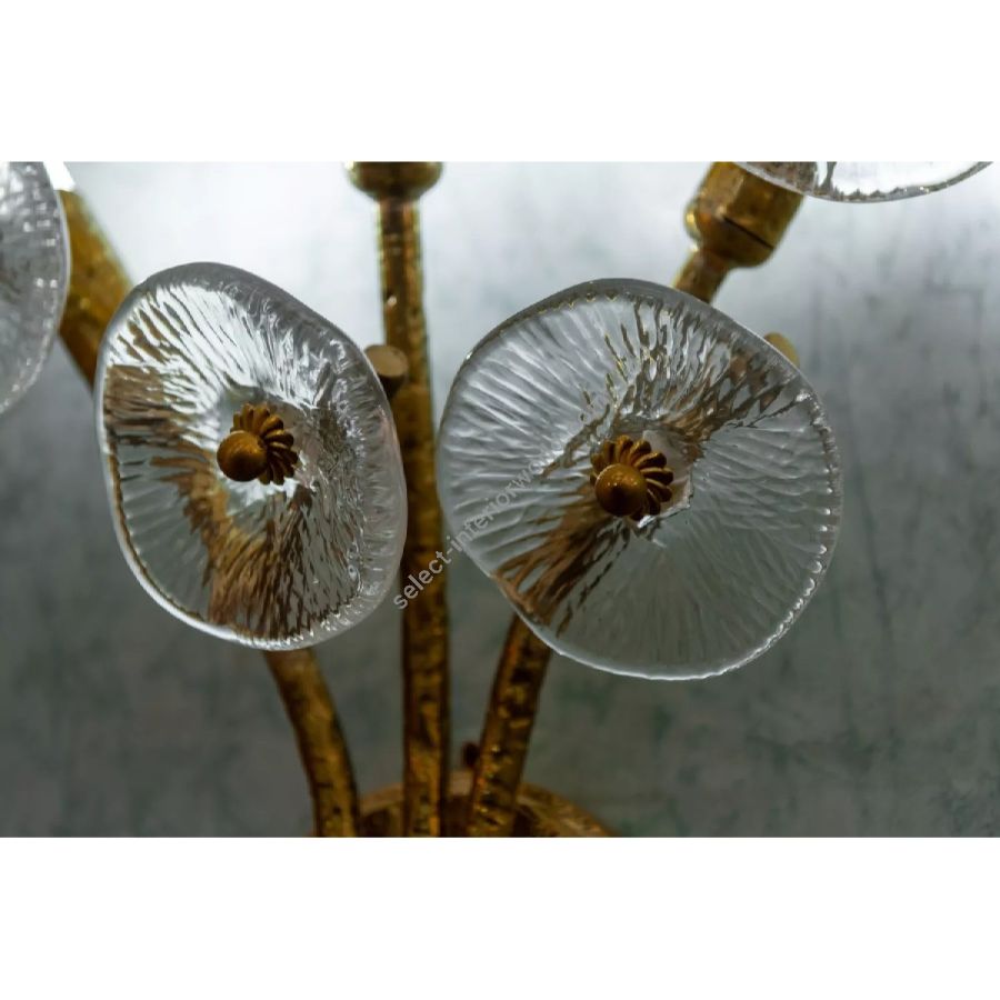 The flower meadow is the inspiration of this spectacular collection, where the glass forged as a simple flower decorates and embellishes the hammered brass structure. Here it is presented in ceiling and wall versions, but it is suitable for developing lots of solutions to adapt to the most diverse lighting needs. The finish is in Natural Brass, but can be customized