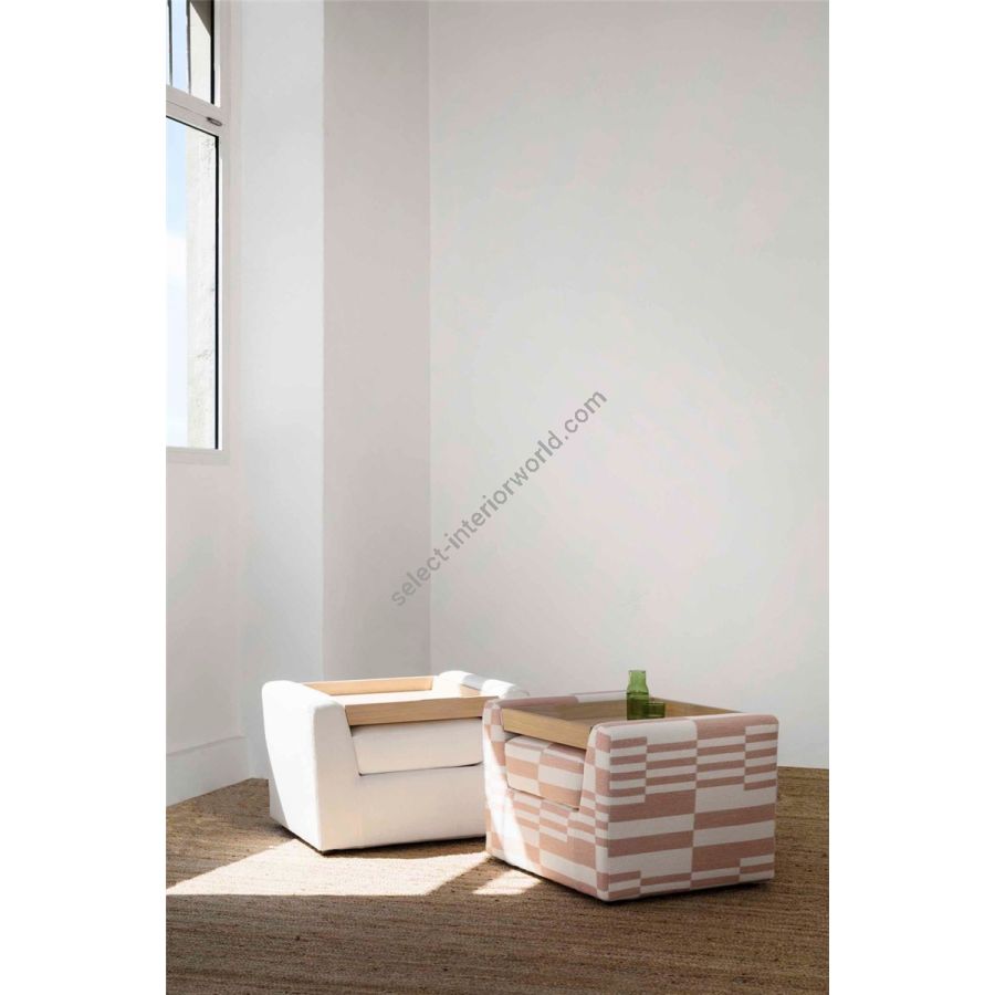Paolino is a comfortable seat which welcomes people and brings a strong mark in the rooms. When Paolino pouf teams up with Paolino Tray, it becomes pouf and small table at the same time. The tray is taken, moved and put back according to the need and the moment. Available also completely covered in raffia.