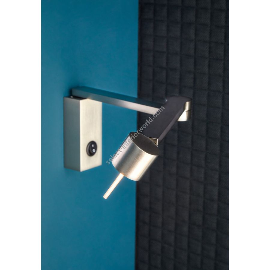 It can be used at the bedside or directly on the headboard, and is characterised by a double-jointed arm that moves both on the axis of the base and on the joint between the two arms. The head is also adjustable.