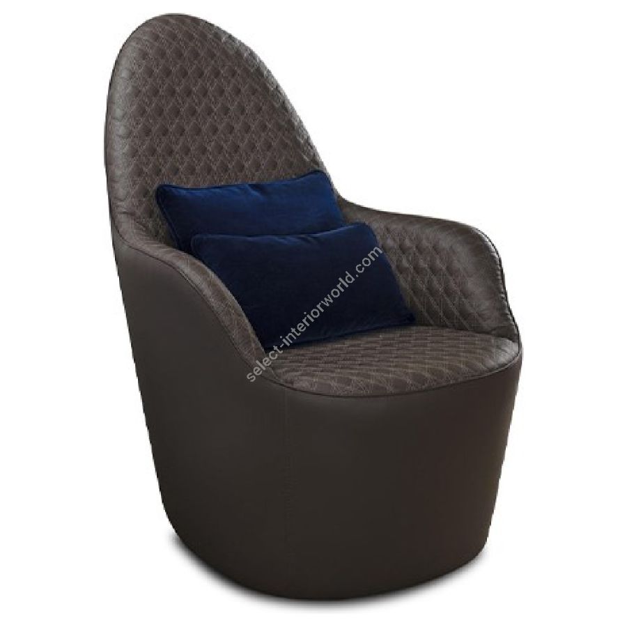 Armchair with padded wooden structure. Upholstery available in fabric, velvet or leather with internal San Marco quilting. Optional swivel magnetic base.