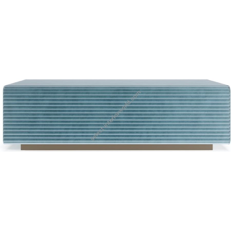 Padded bench covered in leather or fabric with quilting. Plinth in Bronze (100M) finish.