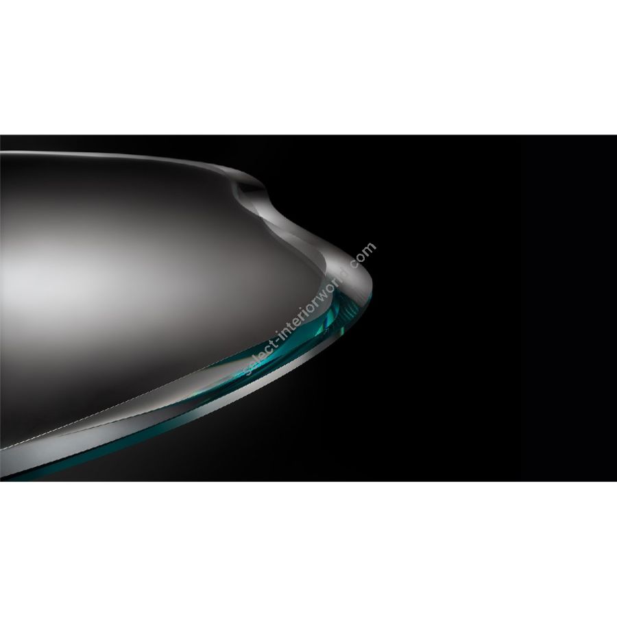 Table with hand-made base in Murano glass in blue-grey colour. Extraclear glass top with double bevel.