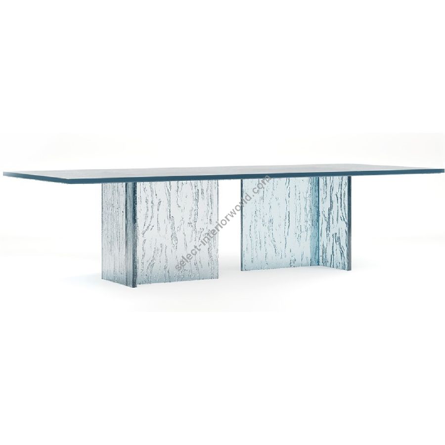 Handcrafted solid fused glass table by master glass artisans.