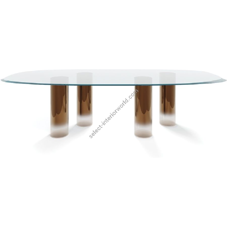 Dining table with base composed by Murano glass cylinders in the colours transparent, red, blue, aquamarine, amber, tobacco, amethyst or in shaded sputtering finish bronze, silver or copper.