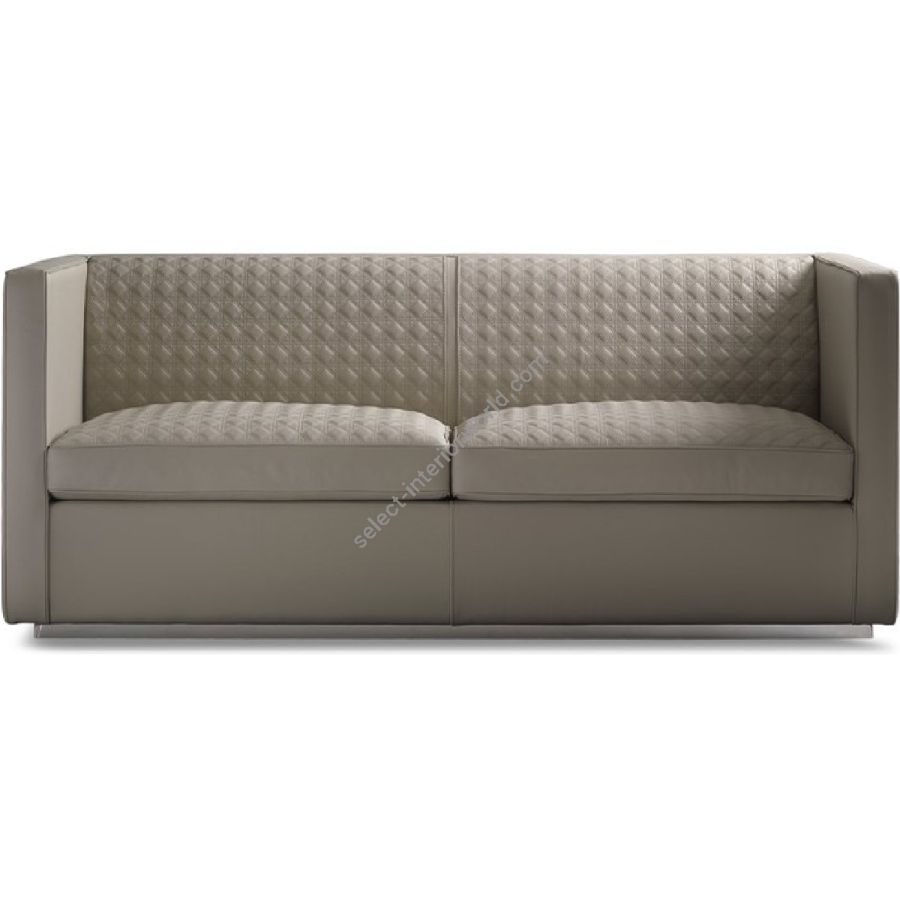 Collection of padded sofas and armchair with wooden structure and feather and polyurethane padding. Upholstery in fabric or in leather with San Marco quilting on seat and back. Metal base in Bronze finish.