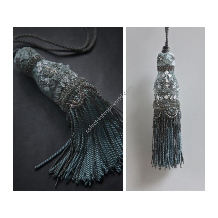 The Bianca key tassel is an opulent design of jewelled bands, crowns and swags in silver thread and delicately embroidered crystals.