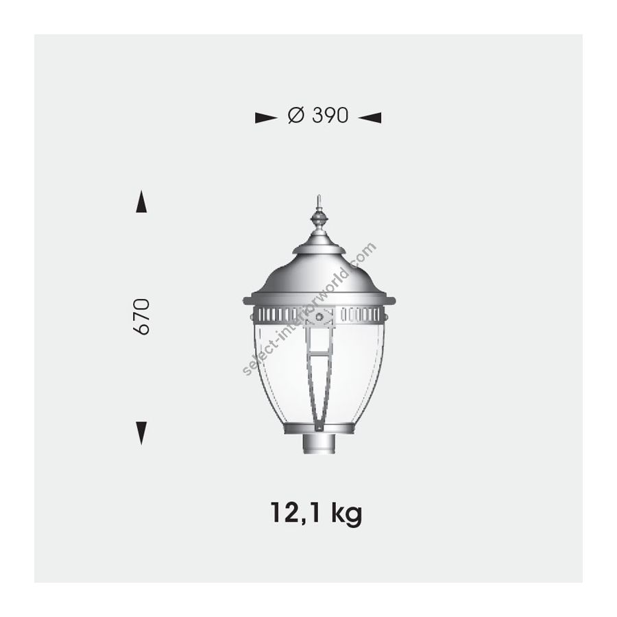 This post lamp by Robers (Germany) is a combination of the Contemporary and Classic styles. Its globe shade of blown glass in an opal finish adds a modern look while the rest of the details stand for the classic ones. A laconic base and a column support the frame, all made of wrought iron. The frame includes vertical rods and a horizontal strap, crowned with a small finial. The lamp is available in 10 finishes to choose from. It provides for sustainability and water-resistant to serve as a source of light near the garage, in front of the entryway, in the garden, or the yard.