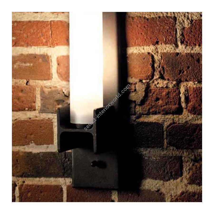 This wall lamp by Robers (Germany) comes from the collection “Indoor 4”. It’s a combination of classic wall lamps and candle lamps. The flat rectangular base is made of hard steel according to the traditions the manufacturer keeps since 1964. A small holder, also made of hard steel, is attached to the base. The cylindrical shape of the glass lampshade is placed right in the center of the holder. Every part of the wall lamp is handcrafted and processed in a way to get sustainability and serve for several years. The blacksmiths of the brand paint each fixture by hand giving it an exclusive touch as there are no two similar finishes in the final product.