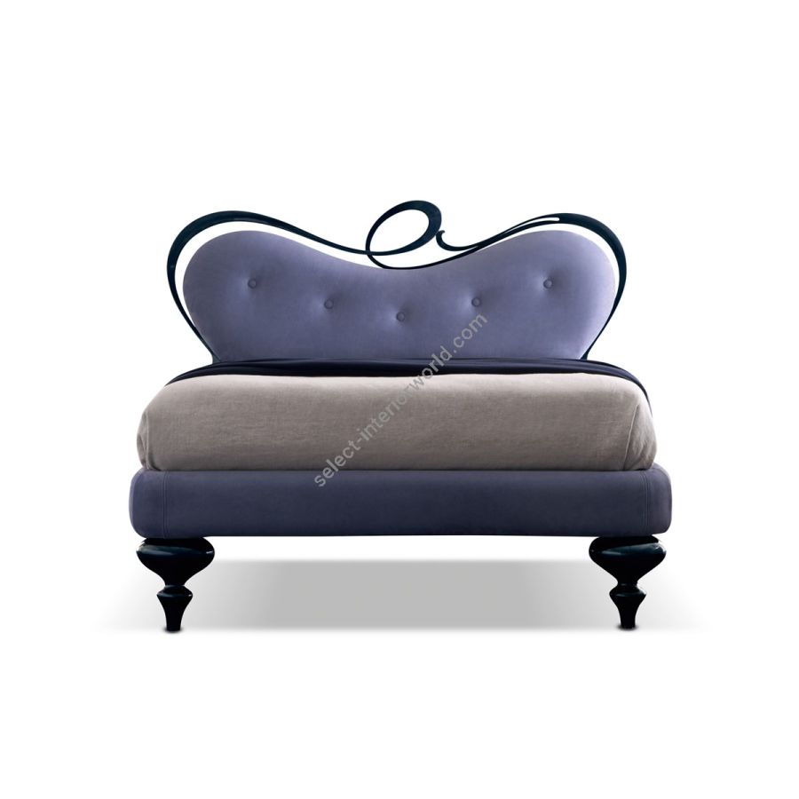 A bed with a peculiar bedhead, thanks to the curved, unique, unforgettable shapes in hand-shaped iron.The bedhead is enriched with a choice of different upholsteries and customizable in the use of fabrics, leathers, eco-leathers. A bed with an iconic, memorabe and distinguished draw.Perfect the combination with the padded bedrail and the massive wooden leg finished in a wide range of colours.