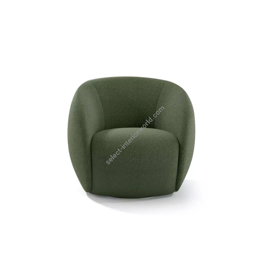With its compact proportions, the armchair easily adapts to different interiors — whether in a contemporary living room, a stylish lounge, a cozy reading corner, or even a bedroom retreat. The Sapin Green fabric is both soft to the touch and visually calming, pairing beautifully with wood, stone, brass, or minimalist neutral palettes.