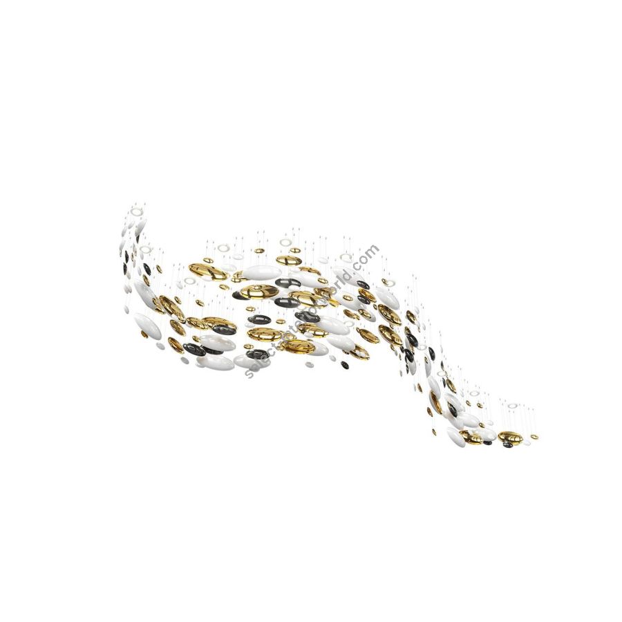 Embodying elegance in its purest form, the Bowls collection showcases a sleek design that creates a fluid wave of light within any interior. Each crystal piece is enhanced by contrasting finishes – one side features a reflective metal nanocoating, while the other is infused with a complementary colour. Suspended in a flowing arrangement, Bowls forms a striking, contemporary statement piece.