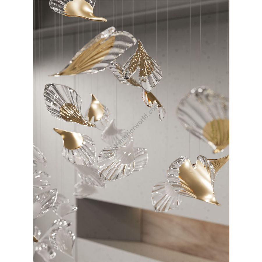 Capturing the organic beauty of leaves drifting through the air, the Breeze collection draws inspiration from the everchanging nature. Each handblown crystal leaf reflects the delicate interplay of light and colour, echoing the gentle movement of the wind to bring a tranquil atmosphere to any interior.