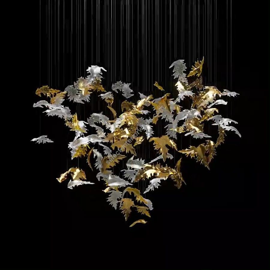 As the warm, gentle breezes of autumn lift and swirl leaves in a mesmerizing dance, the Flying Leaves collection captures this fleeting moment in time. Each piece is crafted from handblown crystal and meticulously shaped to reflect the beauty of autumn in nature. Suspended in a flowing arrangement, the collection embodies the delicate movement of leaves caught in the wind.