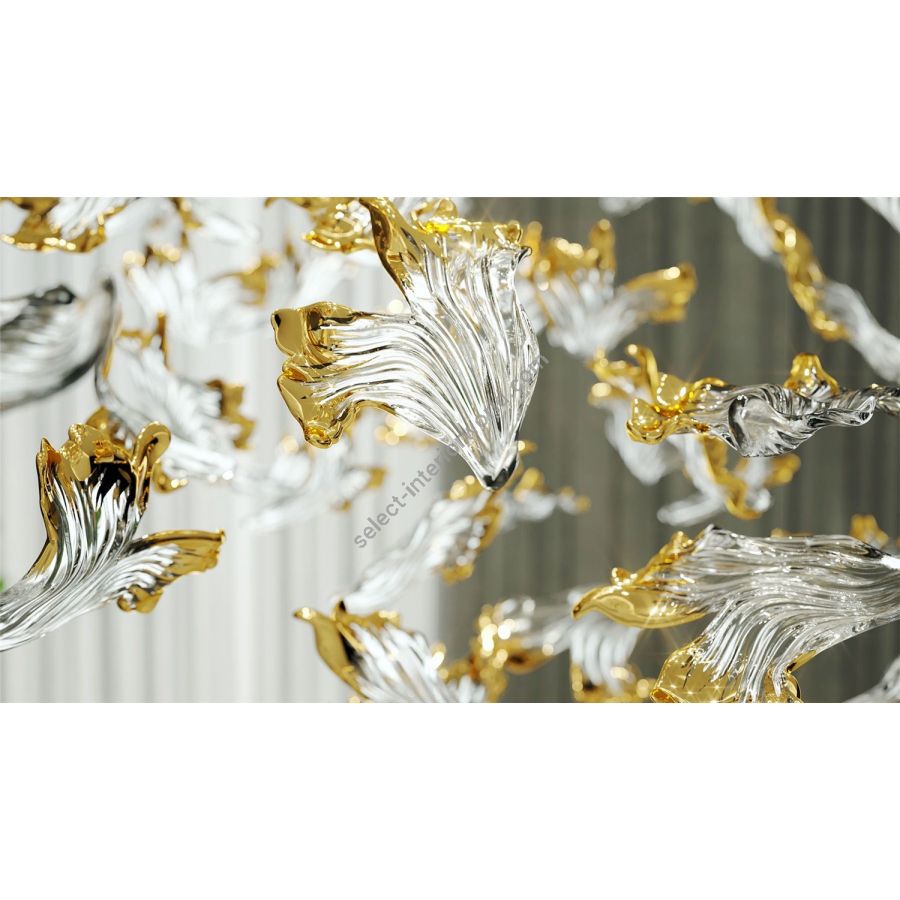 Drawing from the delicate beauty of petals falling like icy snowflakes, the Frozen collection captures the fragile elegance of flowers touched by the first frost. Each crystal petal embodies the intricate details of nature preserved in winter’s embrace. A subtle colour gradient and gilded edges enhance the frosty effect, creating a shimmering interplay of light.