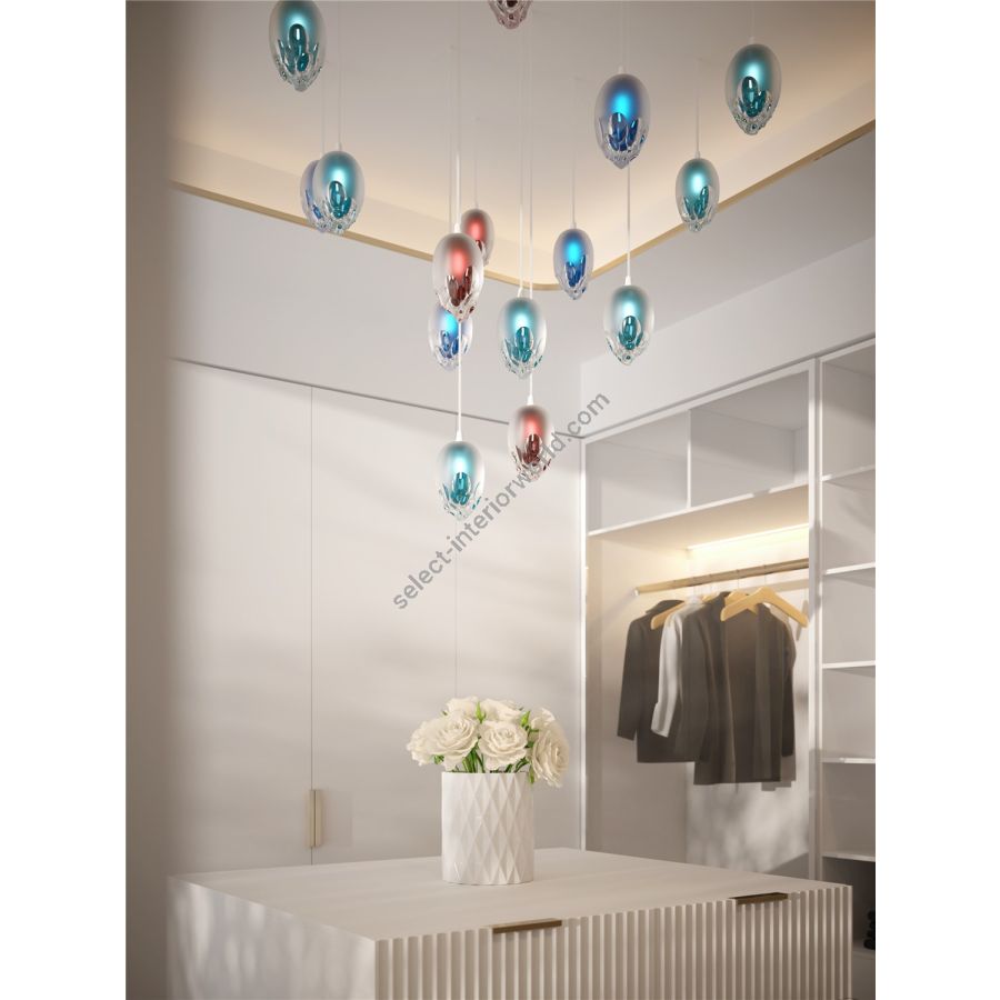 The GEM collection harnesses the latest glass-cutting techniques to create dazzling pendants in deep jewel hues of Aquamarine, Emerald and Dark Heliotrope. Each component is cut and polished to create the ultimate luxury piece for your interior.
