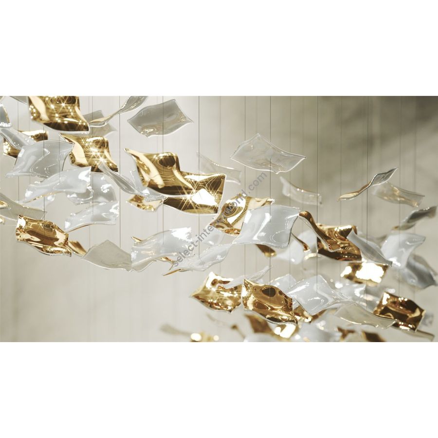 The Kerchiefs collection embodies elegance and luxury, featuring handblown components that appear to float weightlessly, as if caught in a gentle breeze. Each piece is finished with a contrasting metal accent, adding a touch of sophistication to its soft, flowing shape.