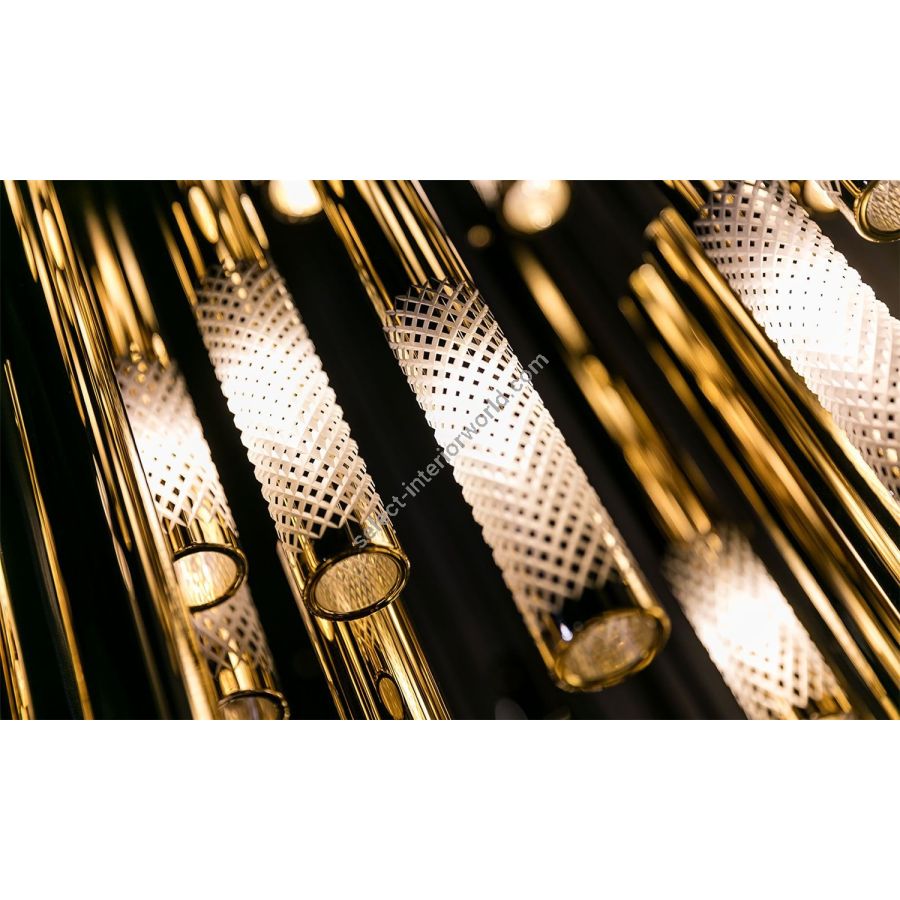 The Symphony collection unites elegance and modern innovation, composing a visual masterpiece of light and form. Each sleek crystal tube is finished with a metal nanocoating and intricate geometric cuts. Arranged in a cascading formation, they reflect and refract light in beautiful patterns, creating a true symphony of light.