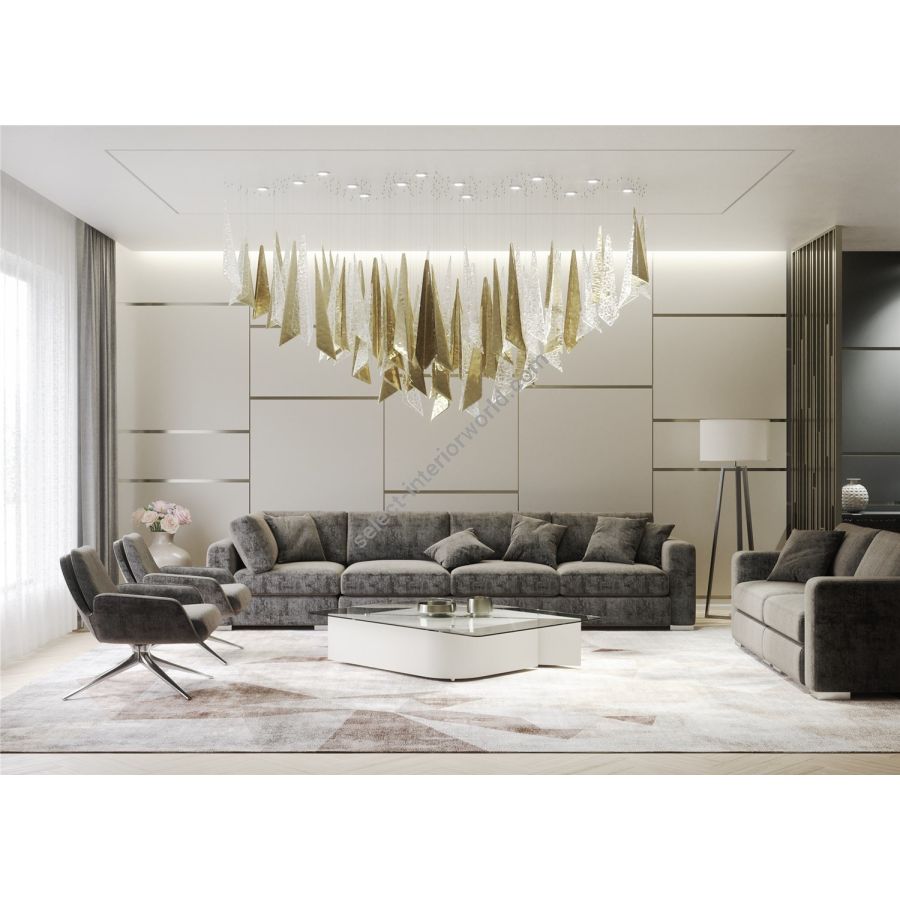 A complex masterpiece crafted from bold contrasts, the Vice Versa collection combines metal nanocoating with textured slumped glass to form captivating shapes. Inspired by the interplay of contrast and inversion, this collection creates striking light installations that make a powerful statement in any space.