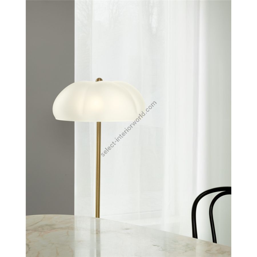 Drawing inspiration from the essence of nature, this exquisite milk-frosted glass cloche, paired with a brass structure, is crowned with a matching, subtle button. Mirrored at the base, it seamlessly serves as a dimmer, inviting one to sculpt the perfect glow.