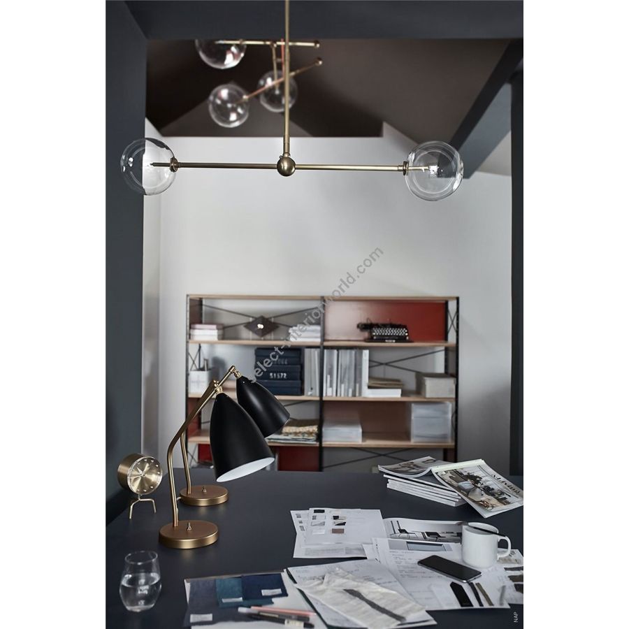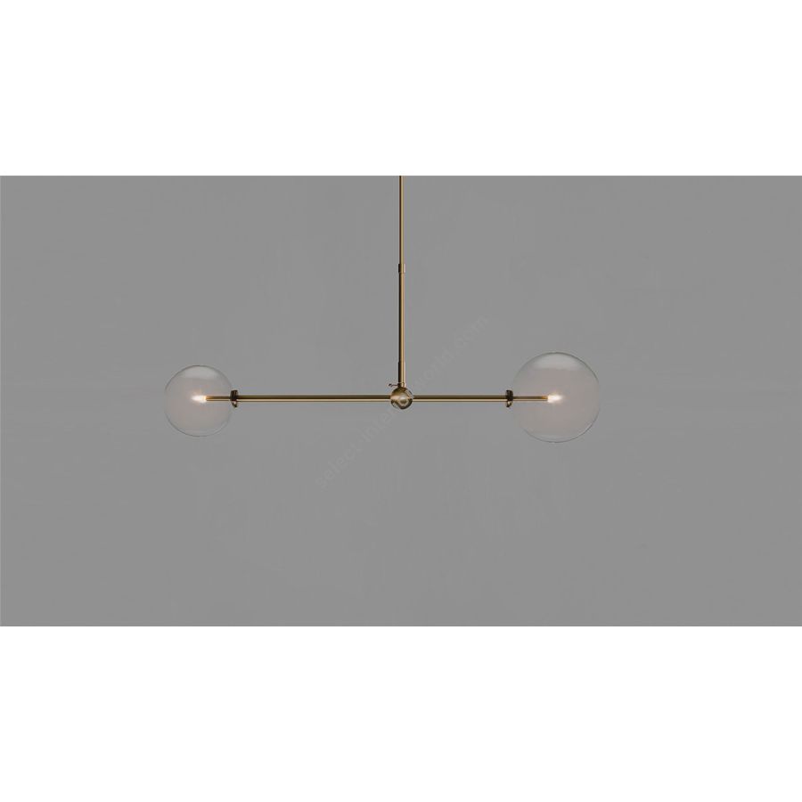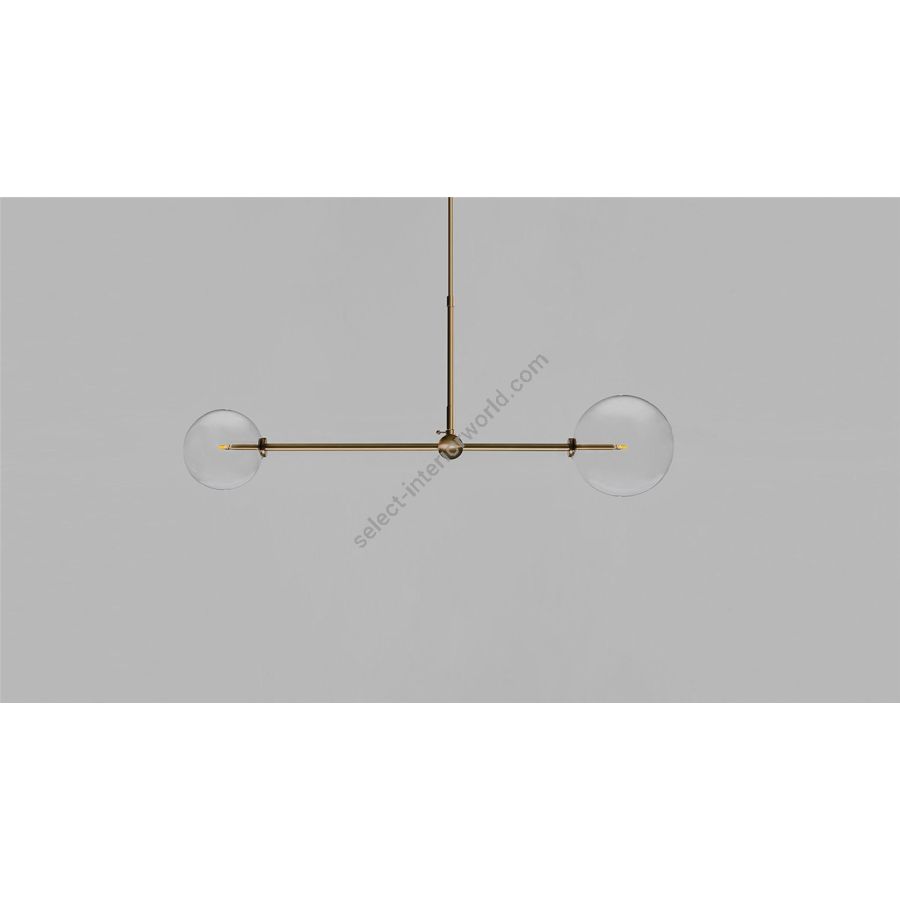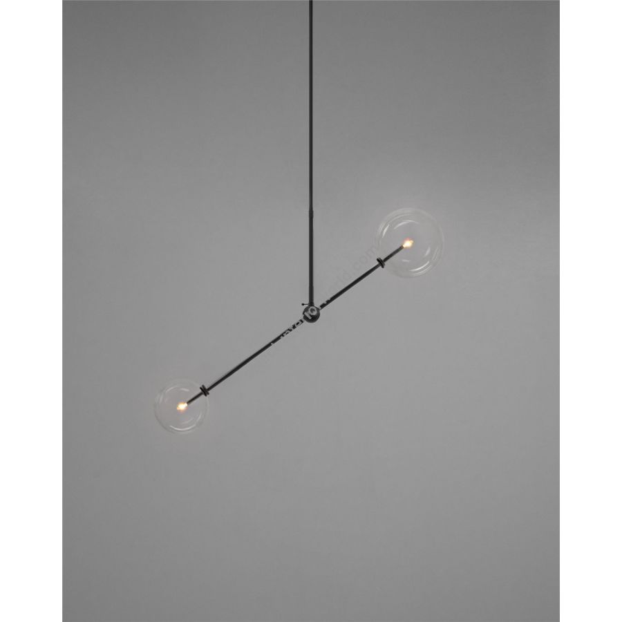 The Balance 200x150 pendant imagines harmony as a process, symmetry in motion balancing the forces of dynamic spaces. The pivoting axis creates motion in a harmonious equilibrium between two different sizes of mouth-blown glass spheres- a visual melody, adjusting to every audience.