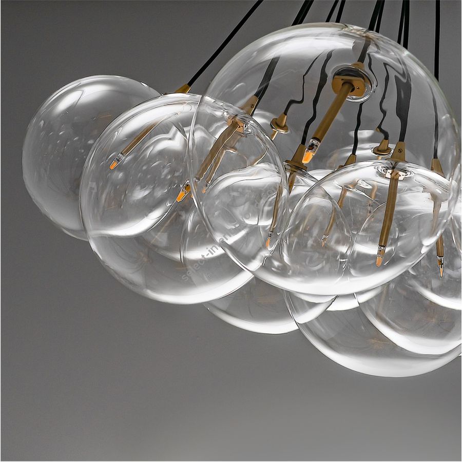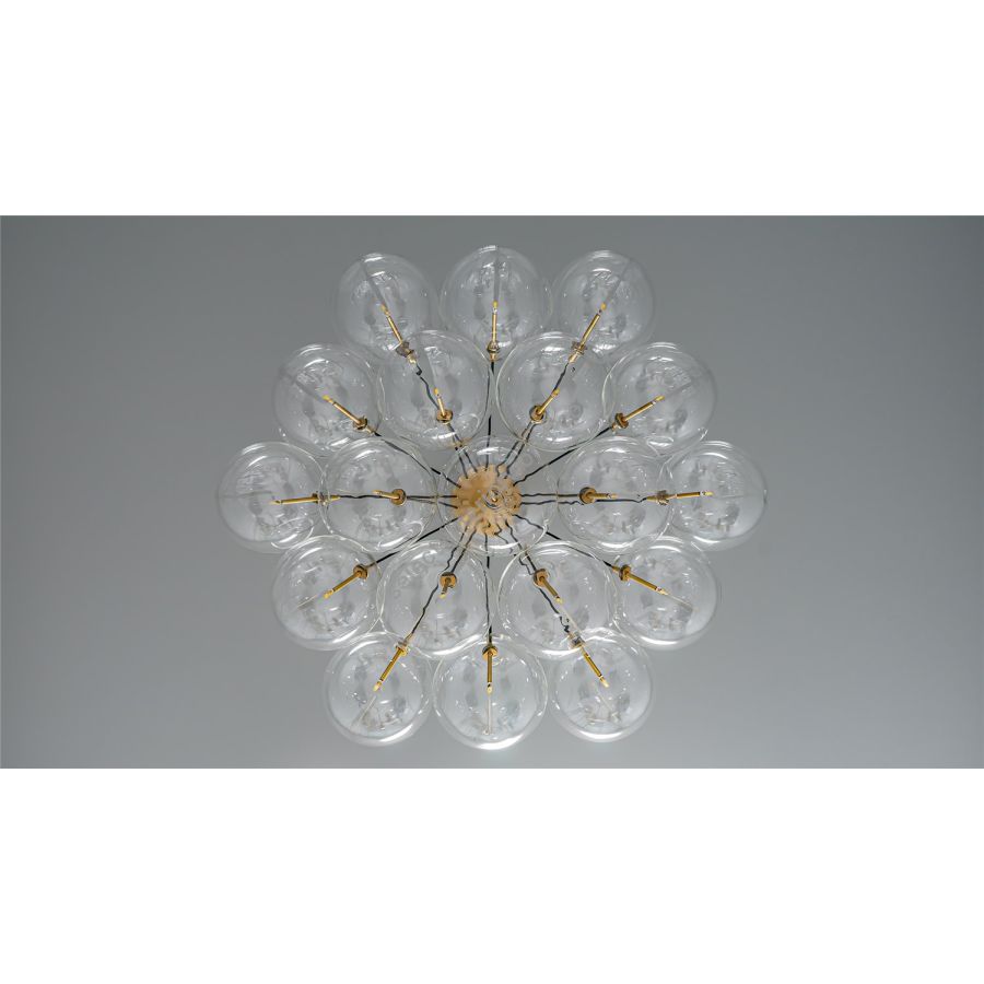 Signature borosilicate globes are suspended in a cluster of soap-like bubbles.