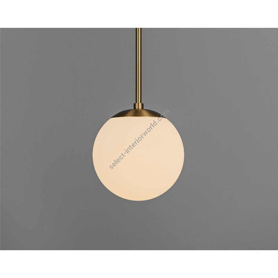 A single globe hangs from a linear brass fixture; a perfect dewdrop. Inspired by the design of classic brasserie lights, the minimalist composition allows the quality of the glass - available in three signature globes - to shine.