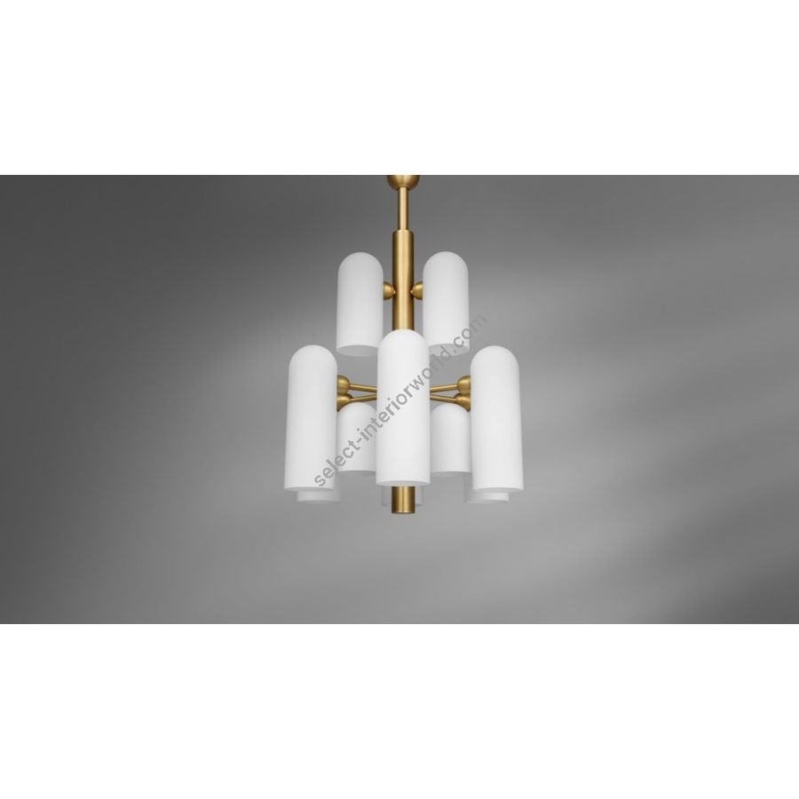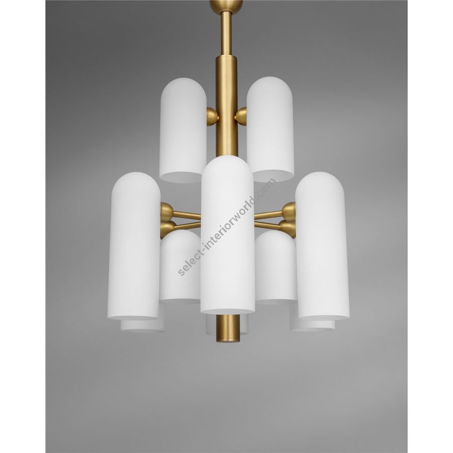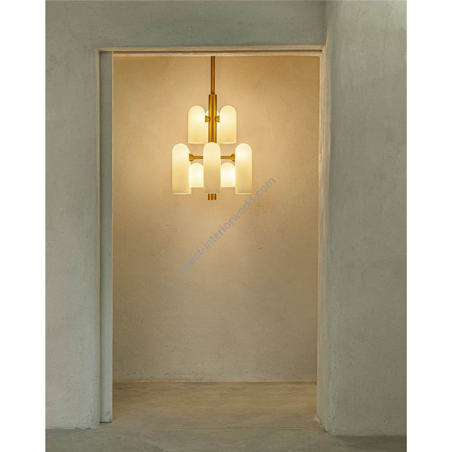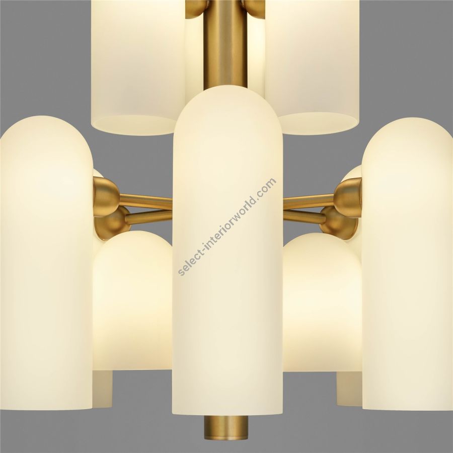 With twelve sculpted frosted curves in varying dimensions, this chandelier is a study in balance and rhythm.