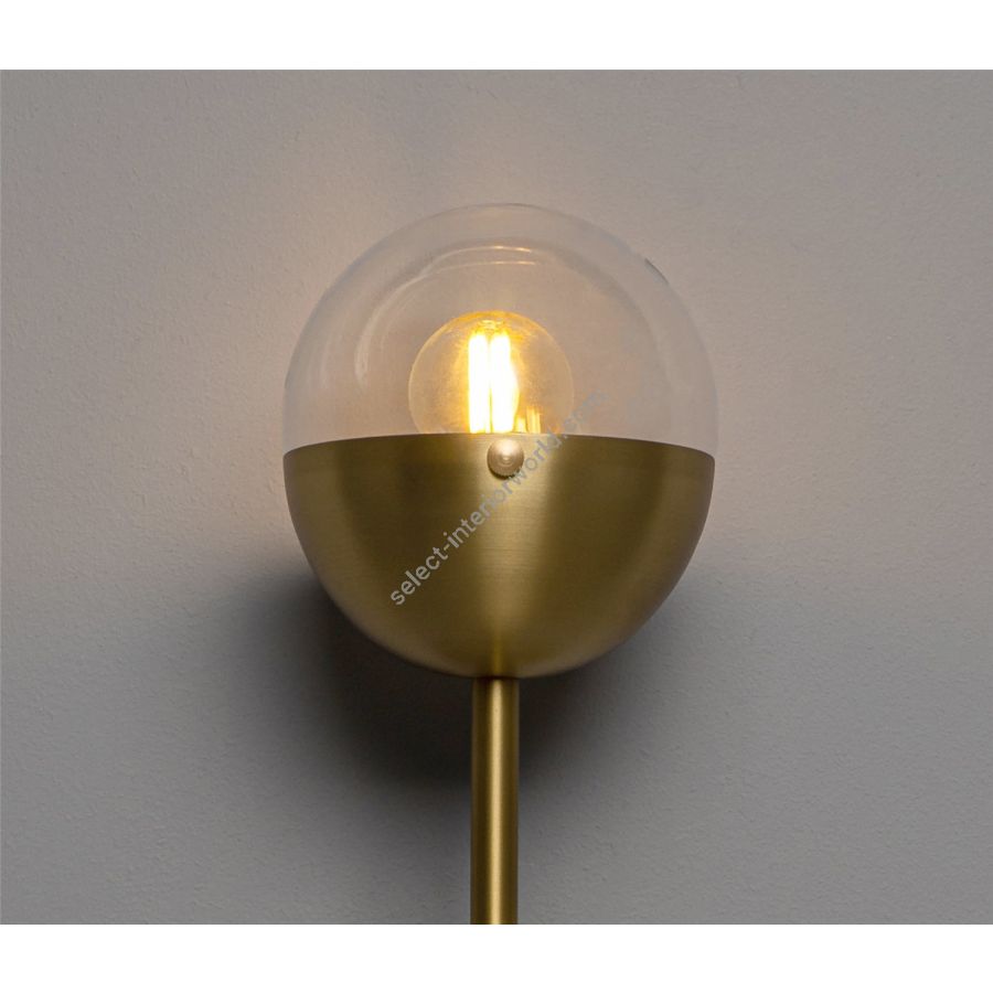 Recalling the basic elements of matter, this wall-mounted molecular model is composed of brass connections. A single bulb is amplified by borosilicate glass to light up spaces large or small. The flush mount base gives this lamp special adaptability, a wall-mounted statement, or a compact chandelier.