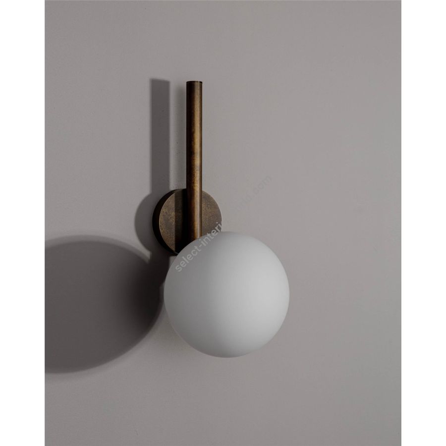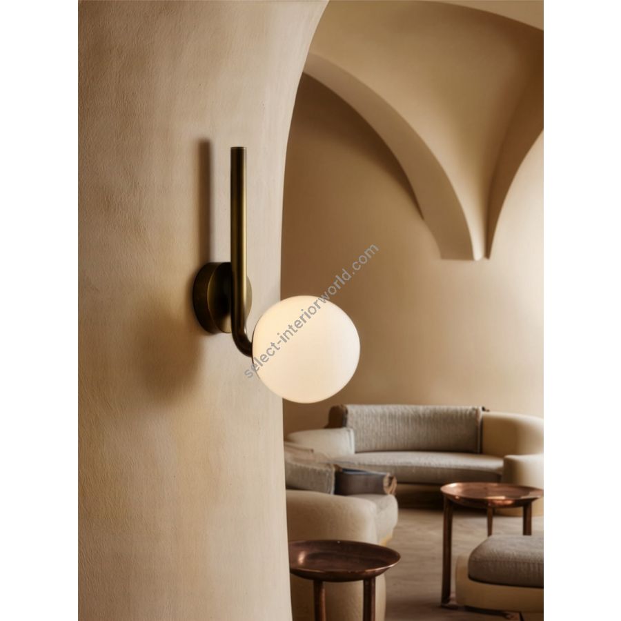 Even solitary, coherence resides in the line. The Tubular Sconce MD distills this graphic principle of the early modernists into a fixture; a solid brass arm extends from the wall, curving deftly to cradle a single, glowing sphere of opal, marble, or clear ribbon glass.Selectable in various brass finishes; a soft, deliberate gesture for a tucked-away space.