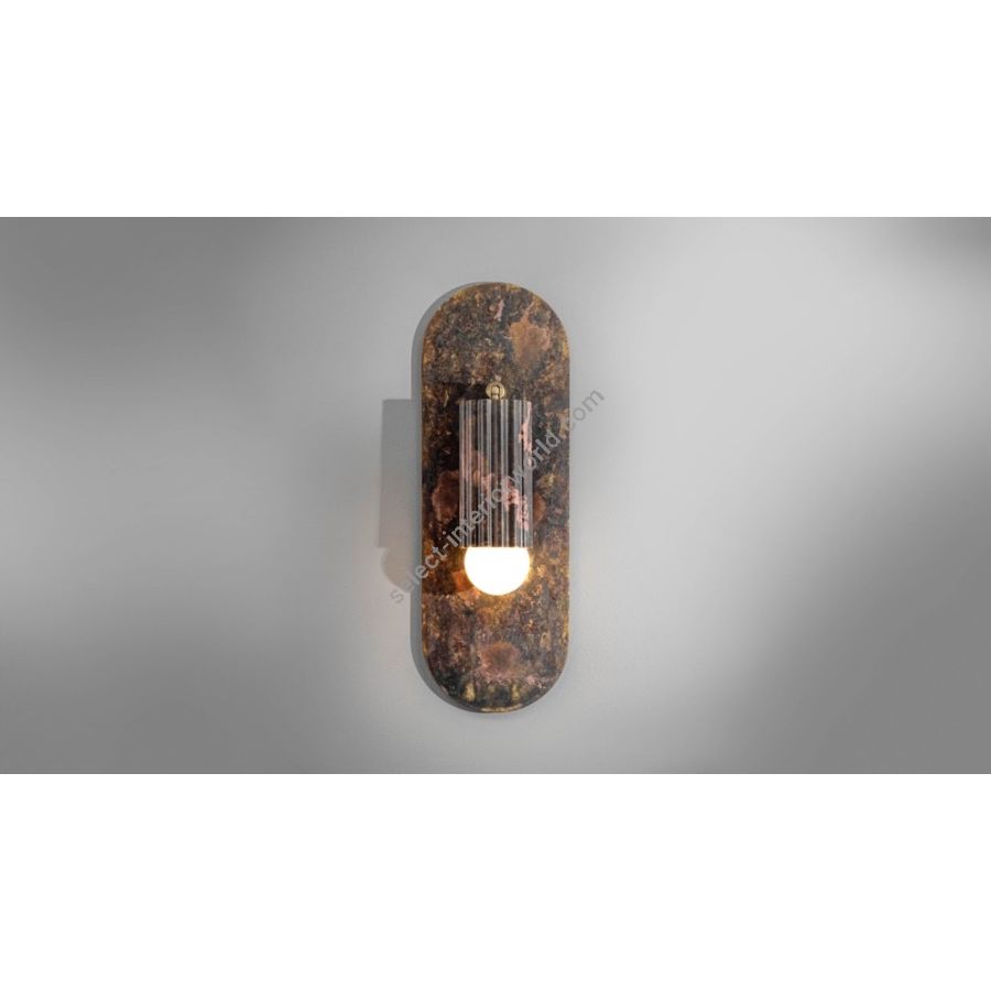 A fluted cylinder, mounted on an oval plate, all crafted in solid brass, can be adjusted up to 95 degrees, introducing both movement and versatility. Its beam shifts from a crisp accent to a softened glow, shaping the ambience with quiet refinement.