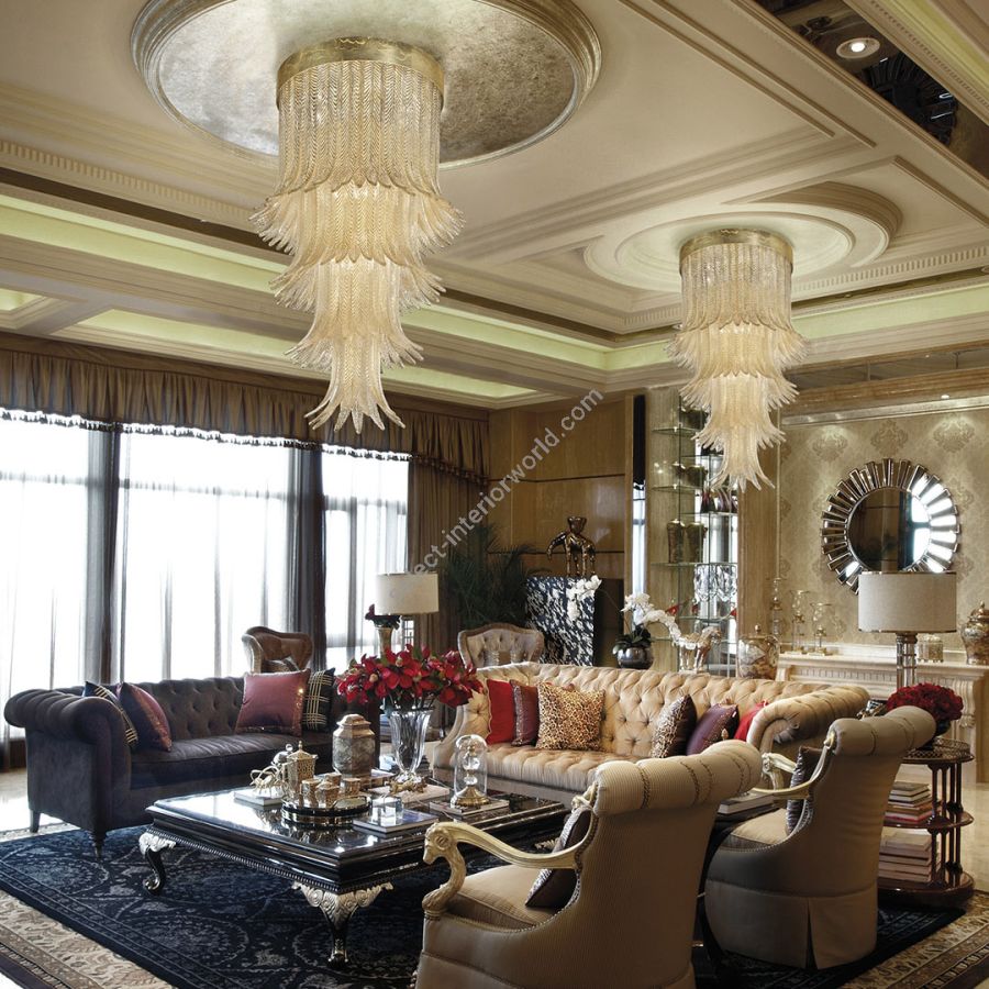 This elegant ceiling lamp is handcrafted from Murano Glass panes in the manufacture according to historical models of the Art Déco period. The murano glass panes cause an interesting diffusion of light. If you want to use designer lighting to light up your home with exquisite taste, this Art Déco style lamp will be the best accent to decorate your space. The lamps have something specific about them, and you can't go past them without noticing them.