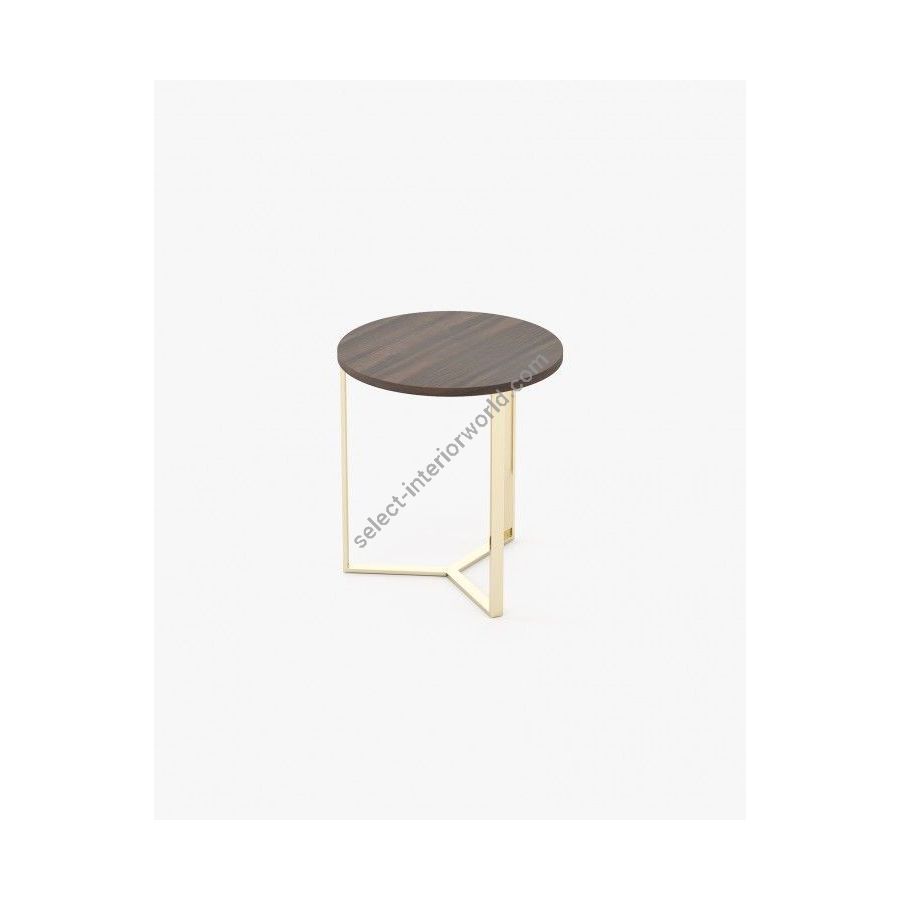 The Dili side table is a modern and elegant piece with straight metal legs and a wooden tabletop, perfect for any room.