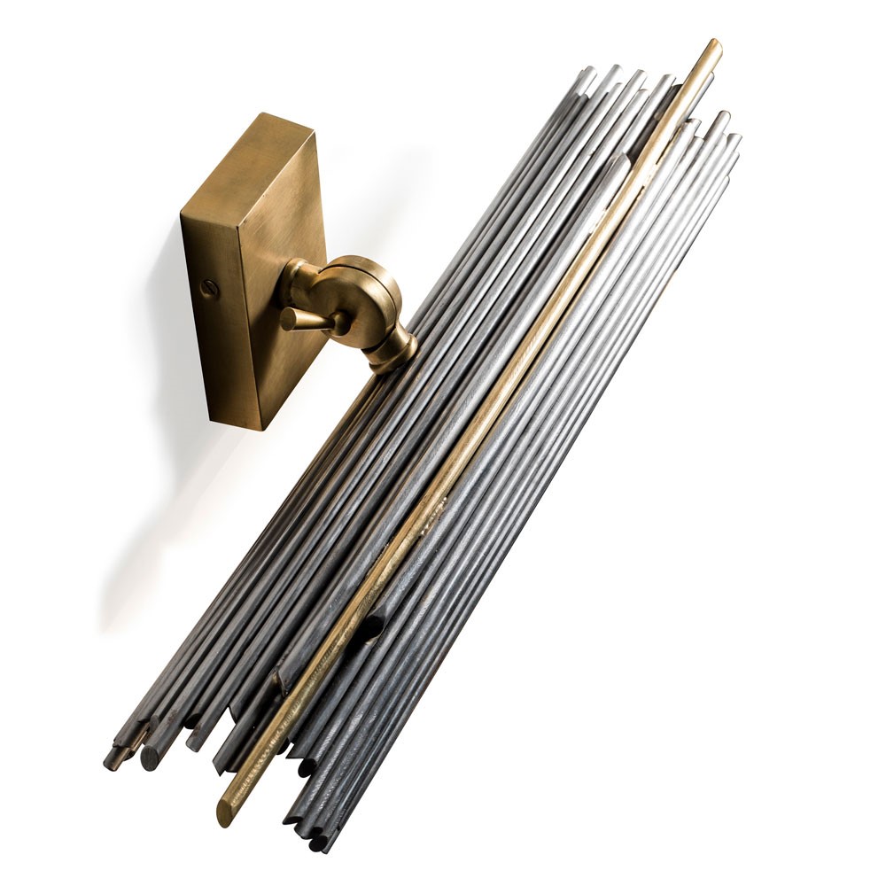 Wall lamp in white alabaster and structure in brass in pewter silver finish